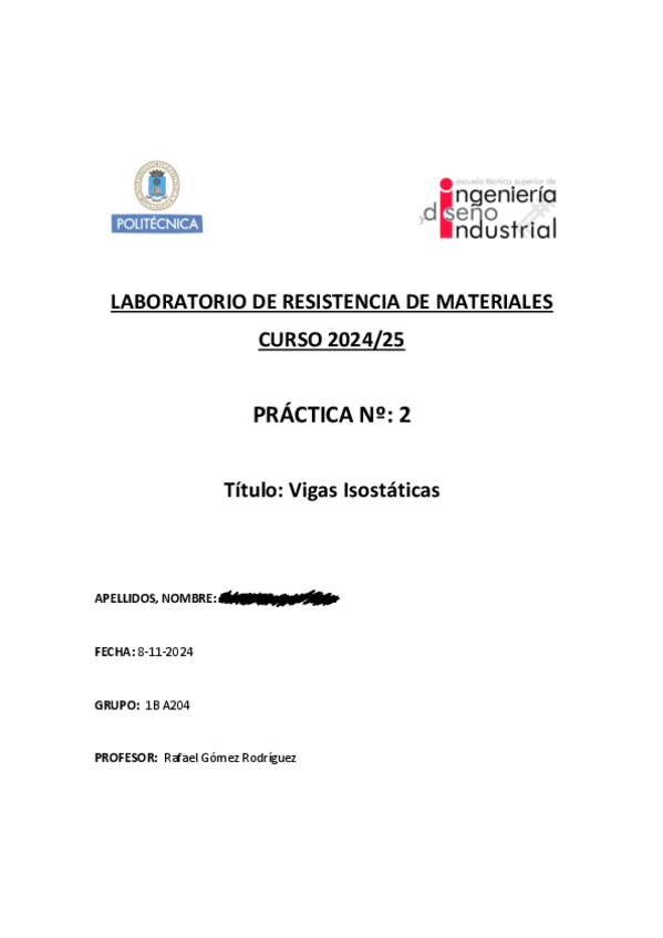 He publicado nuevos practicas de 2º Resistencia de Materiales: INFORMES LABORATORIO RESISTENCIA DE MATERIALES