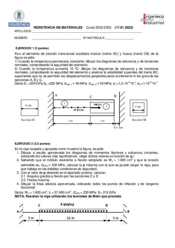 He publicado nuevos examenes de 2º Resistencia de Materiales: Examen enero 2023 Resis resuelto.pdf