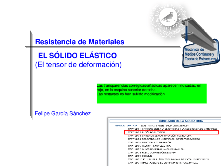 He publicado nuevos apuntes de 2º Resistencia de Materiales: Resumen de transparencias de clase con apuntes. Elasticidad