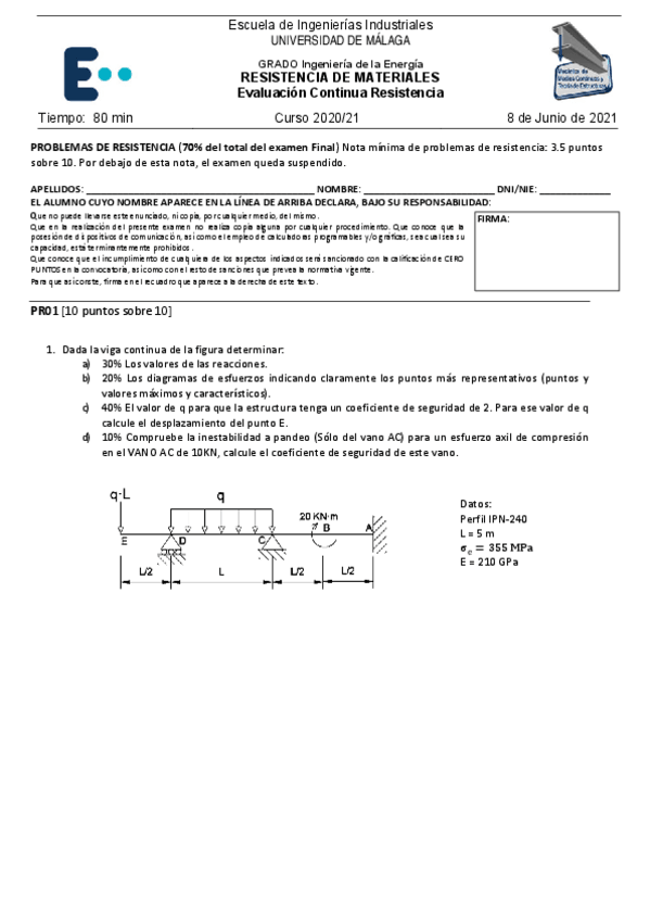 He publicado nuevos examenes de 2º Resistencia de Materiales: Entregaresi.pdf