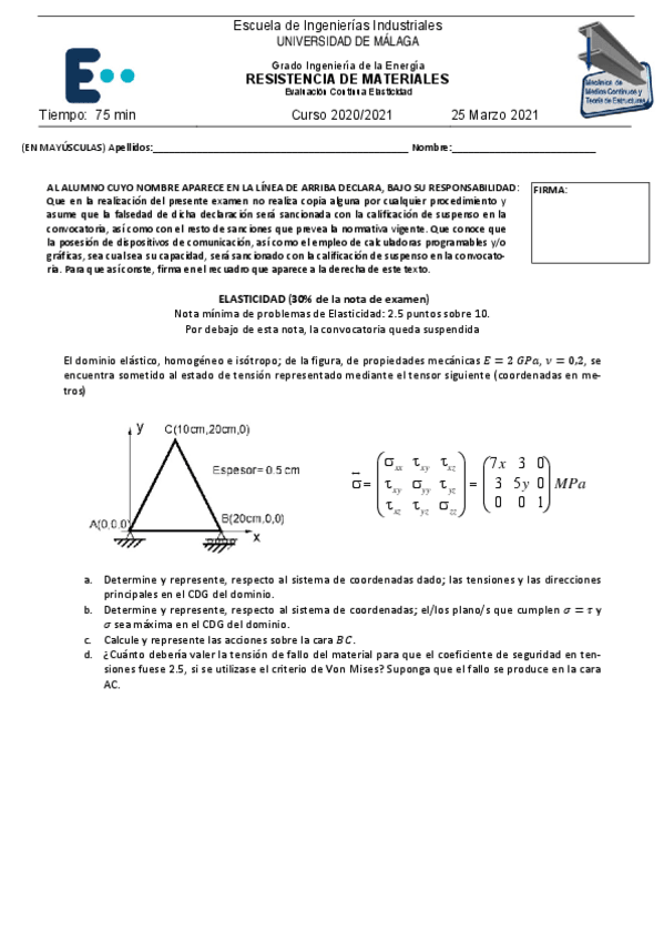 He publicado nuevos examenes de 2º Resistencia de Materiales: Elasticidad.pdf
