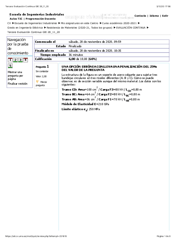 He publicado nuevos examenes de 2º Resistencia de Materiales: Evaluación continua