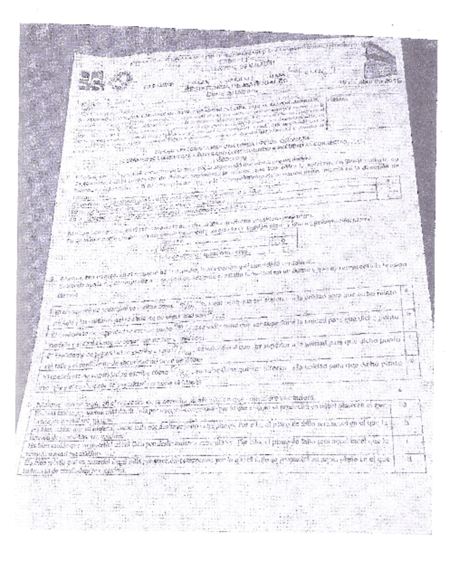 Los ejercicios de los distintos exámenes eran idénticos, de mismo formato, pero con variaciones en sus valores. Tiempo para su realización: 80 min. Nota mínima para optar a presentarse al segundo parcial: 2,5/10.