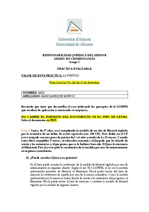 He publicado nuevos practicas de 4º RESPONSABILIDAD JURIDICA DEL MENOR: Practica-1-Parte-Penal.pdf