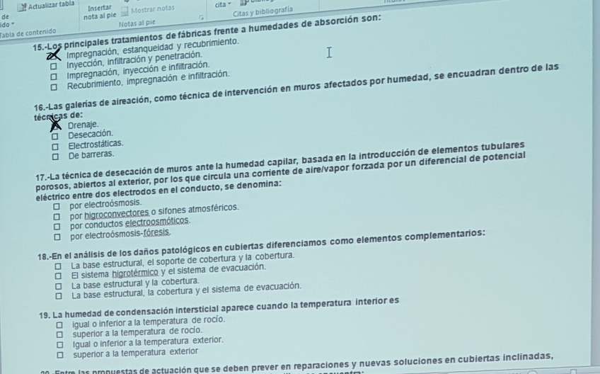 He publicado nuevos examenes de 4º Restauración y Patologías de la Edificación: preguntas tipo test