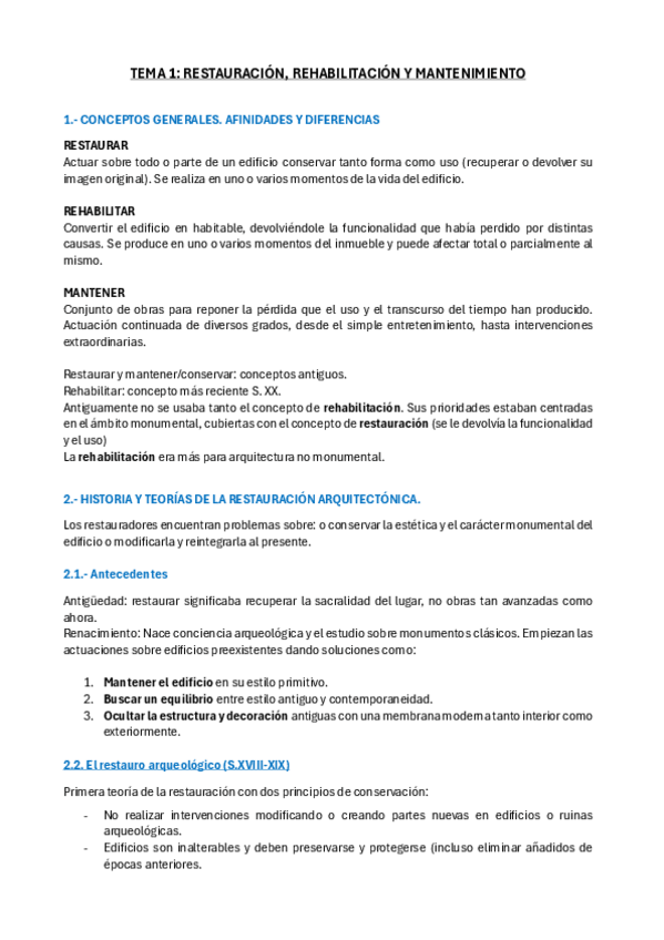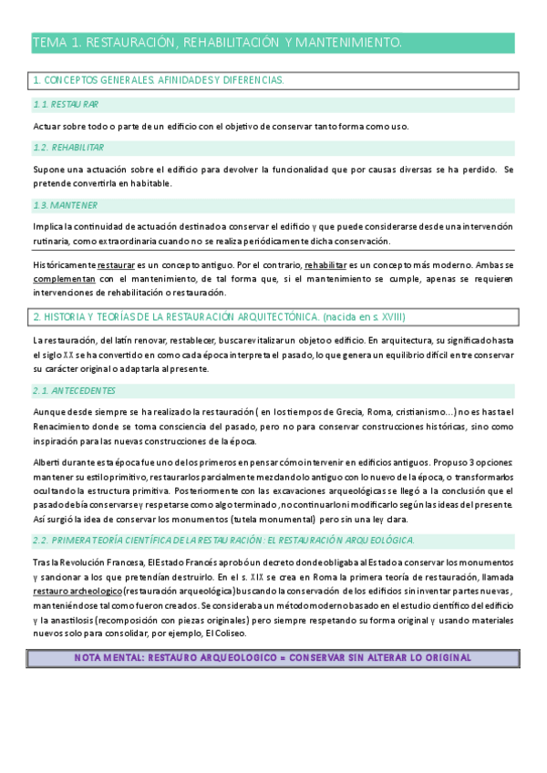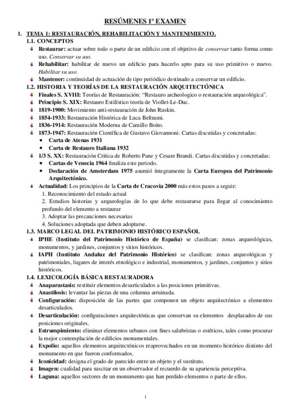 He publicado nuevos apuntes de 4º Restauración y Patologías de la Edificación: Resumen-T1-6-RESTAURACION.pdf