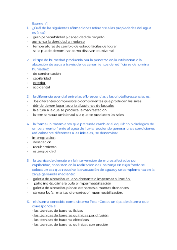 He publicado nuevos examenes de 4º Restauración y Patologías de la Edificación: Preguntas-Restauracion-2o-Bloque.pdf