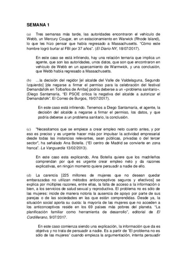 Test semanales argumentación