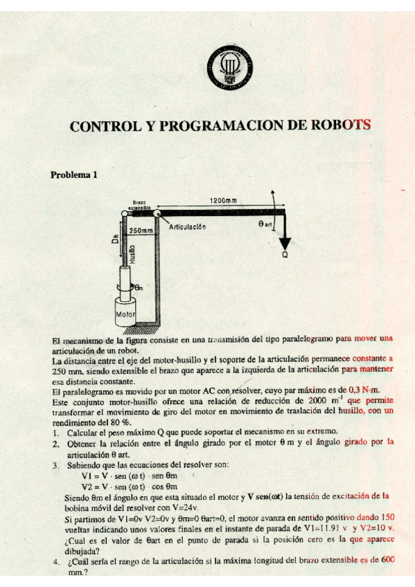 He publicado nuevos examenes de 3º Robótica Industrial: primer parcial robotica.pdf