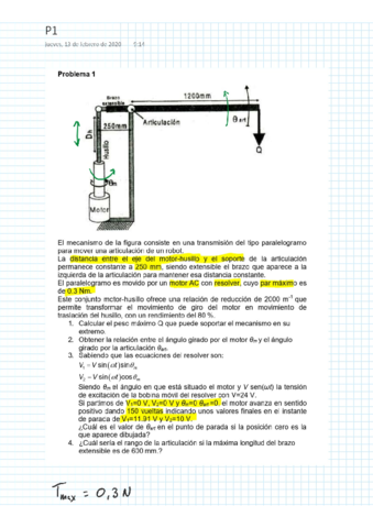 He publicado nuevos examenes de 3º Robótica Industrial: primer parcial robotica.pdf