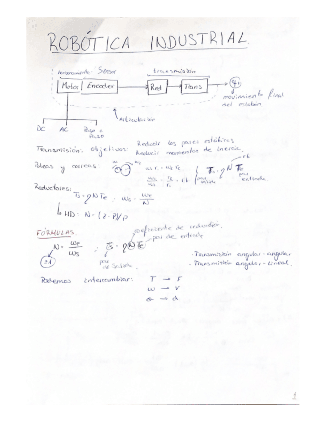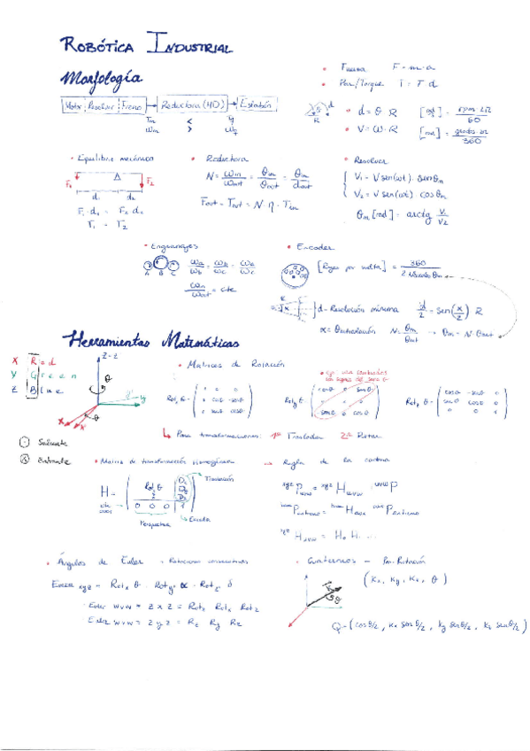 He publicado nuevos apuntes de 3º Robótica Industrial: Resumen Fórmulas