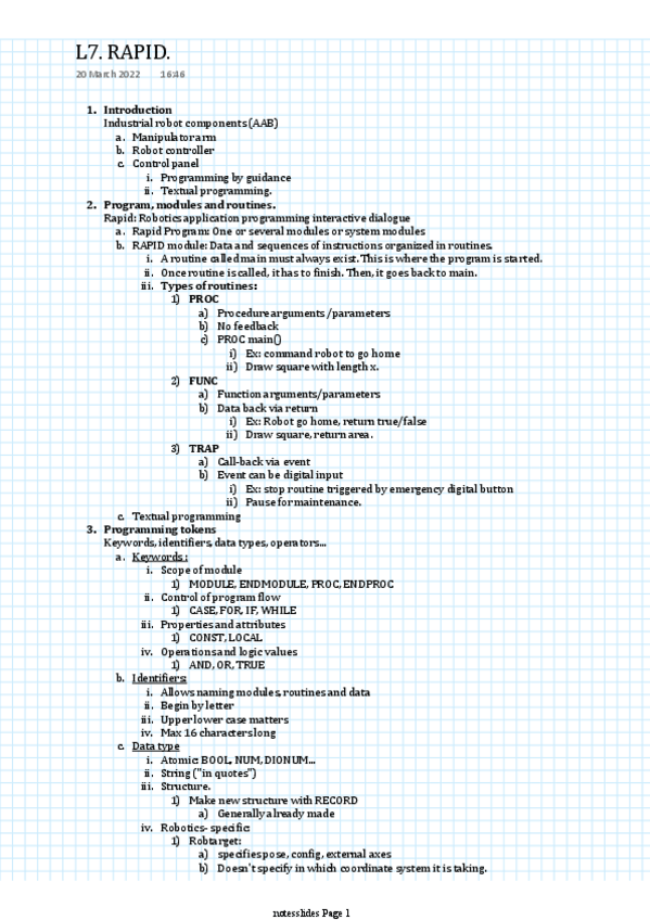 He publicado nuevos apuntes de 3º Robótica Industrial: Tema 3: RAPID