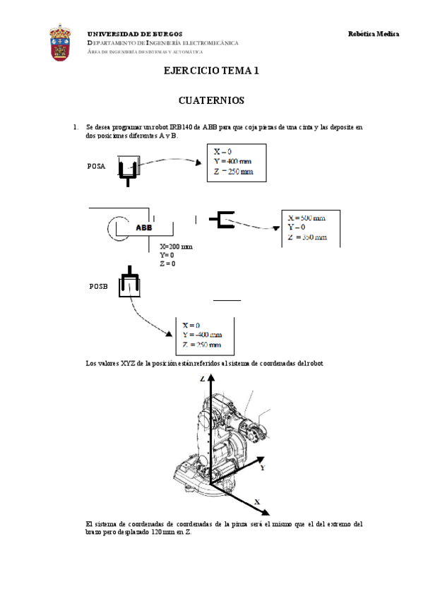 He publicado nuevos ejercicios de 4º Robótica Médica: Ejercicio 2. Representación de la posición y orientación.pdf