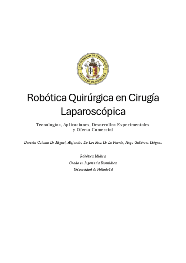 He publicado nuevos trabajos de 3º Robótica Médica: Trabajo Cirugía Laparoscópica