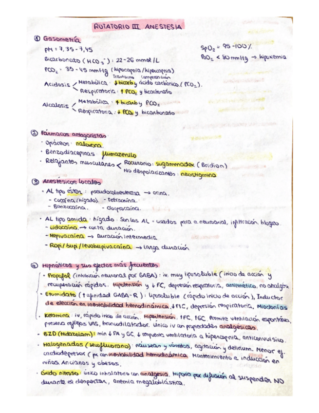 Es un poco de descripción de los fármacos que más se usan en el rotatorio de anestesia para el examen :)