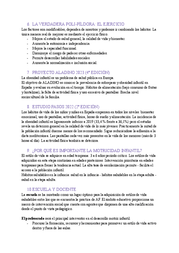 Apuntes del tema 6 del primer parcial de la asignatura "Salud Infantil: Educación Motriz y Artística", impartida por la profesora Inmaculada Sánchez Bernier. En mi perfil están los siguientes temas.