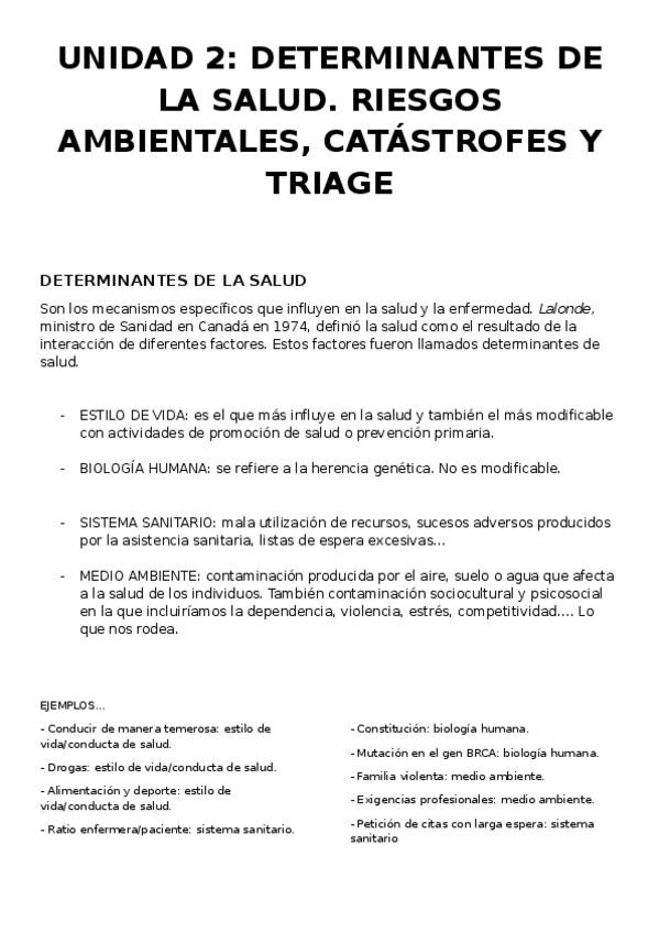 He publicado nuevos apuntes de 1º SALUD PÚBLICA Y PROMOCIÓN DE SALUD: U2-Determinantes-de-la-salud.-Riesgos-ambientales.-Catastrofes-y-triage..docx