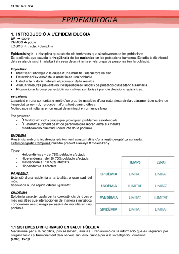 Apunts bloc 1: -Tema 1: Salut i malaltia - Tema 2: Determinants de la salut - Tema 3: Demografia - Tema 4: Epidemiologia