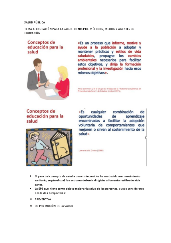 Apuntes salud pública tema 4: educación para la salud. Concepto, métodos, medios y agentes de educación sanitaria.