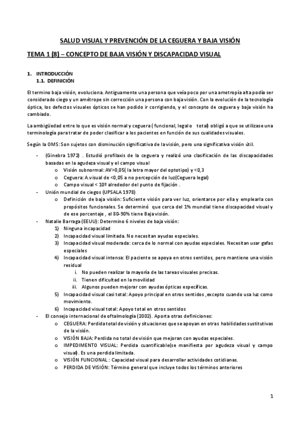 He publicado nuevos apuntes de 4º Salud Visual, Prevención de la Ceguera y Baja Visión: TEMA 1 SALUD VISUAL.pdf