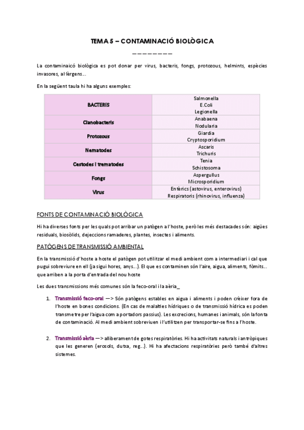 He publicado nuevos apuntes de 5º Sanitat i Gestió Ambientals: TEMA-5-CONTAMINACIO-BIOLOGICA.pdf