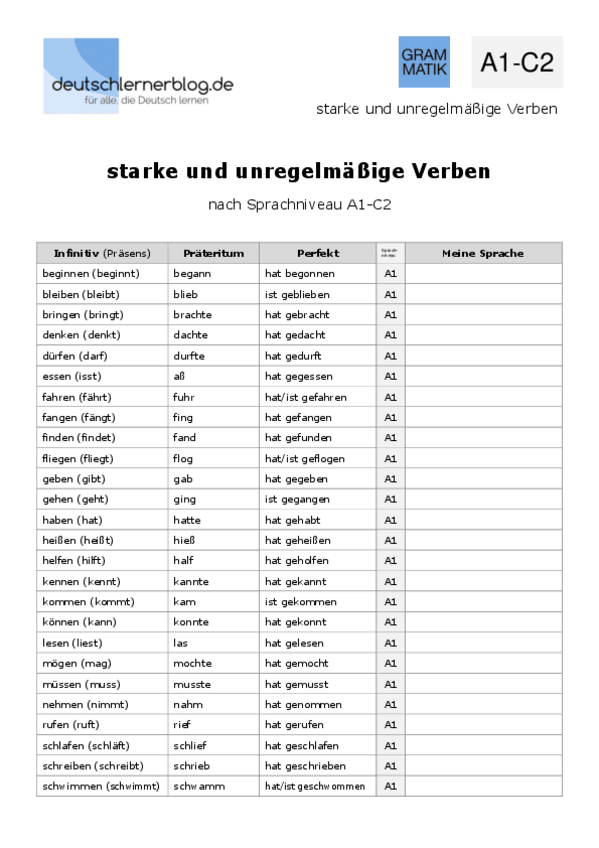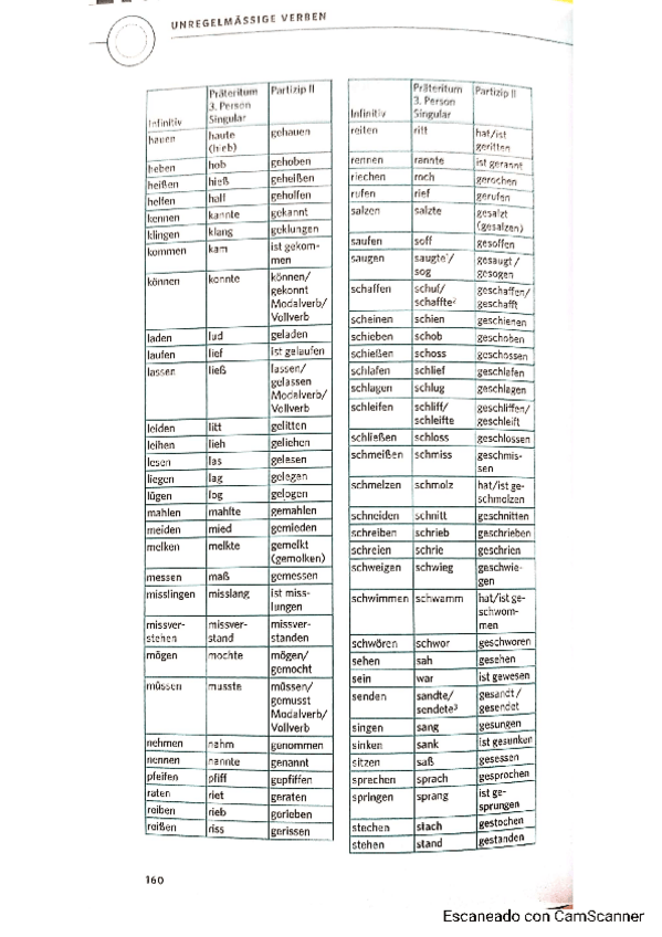 Lista de verbos fuertes y débiles sacados de un libro de la biblioteca