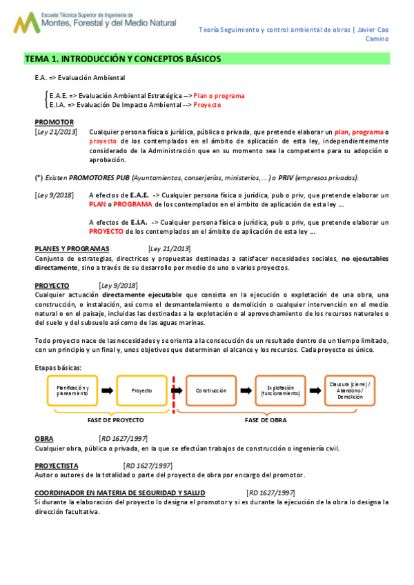 He publicado nuevos apuntes de 4º Seguimiento y Control Ambiental de Obras: 0brasParcial1DefinicionesFases.pdf