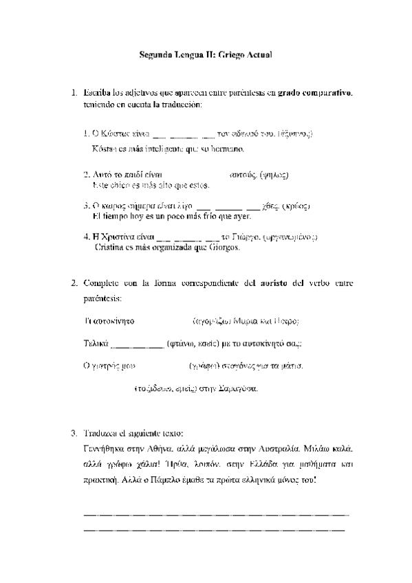 Segunda Lengua II: Griego Actual
