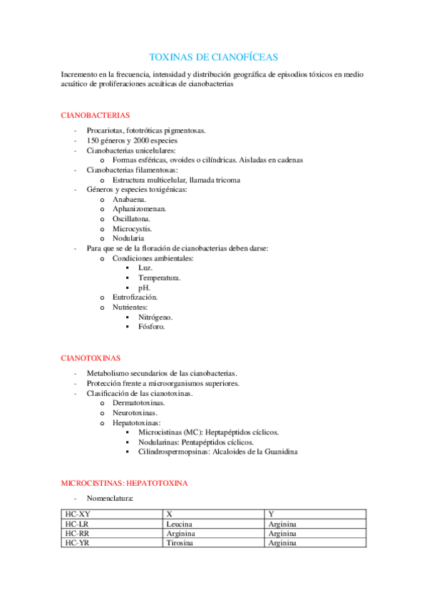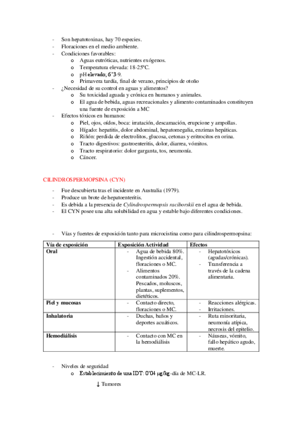 He publicado nuevos apuntes de 5º Seguridad Alimentaria: Riesgos Tóxicos y Prevención: Toxinas de cianofíceas.pdf