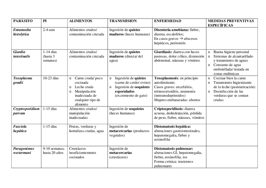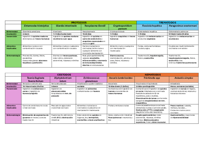 He publicado nuevos apuntes de 5º Seguridad Alimentaria: tabla-parasitos-SA.pdf