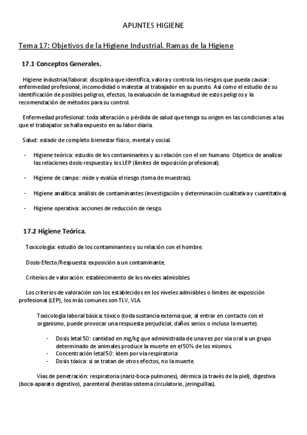 He publicado nuevos apuntes de 4º Seguridad e Higiene: Apuntes-Higiene.pdf