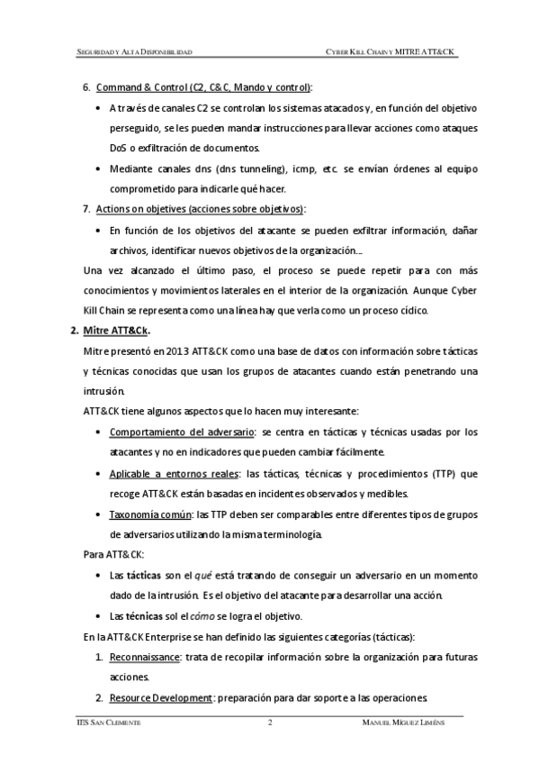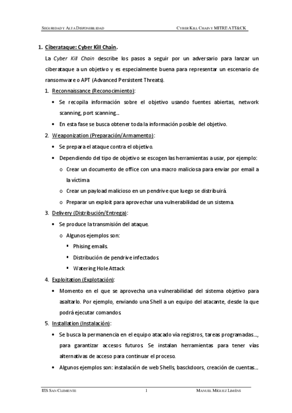 He publicado nuevos apuntes de Seguridad y alta disponibilidad: Cyber-Kill-Chain-y-MITRE-ATTandCK-Resuemen.pdf