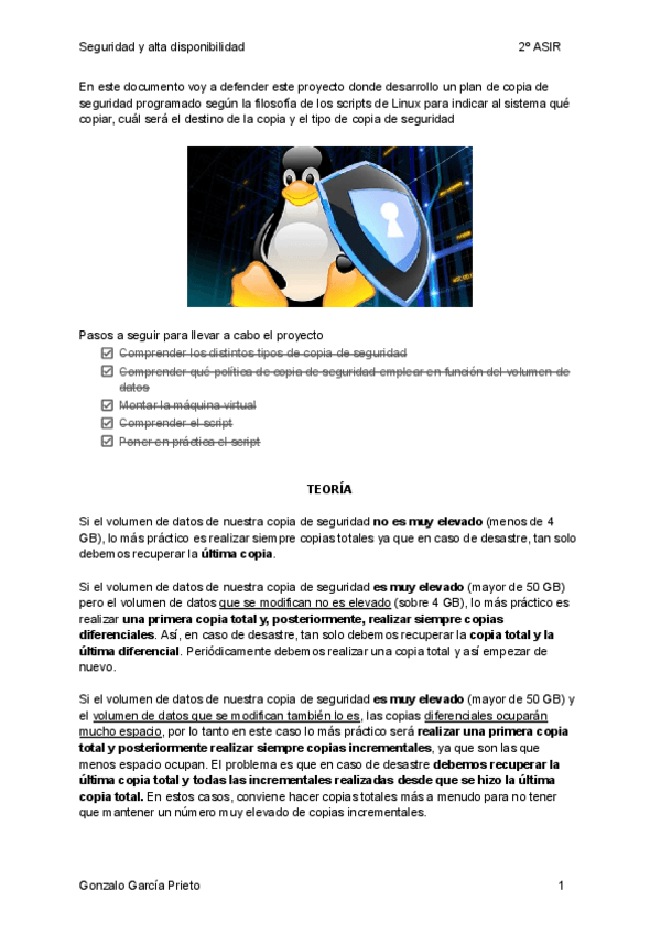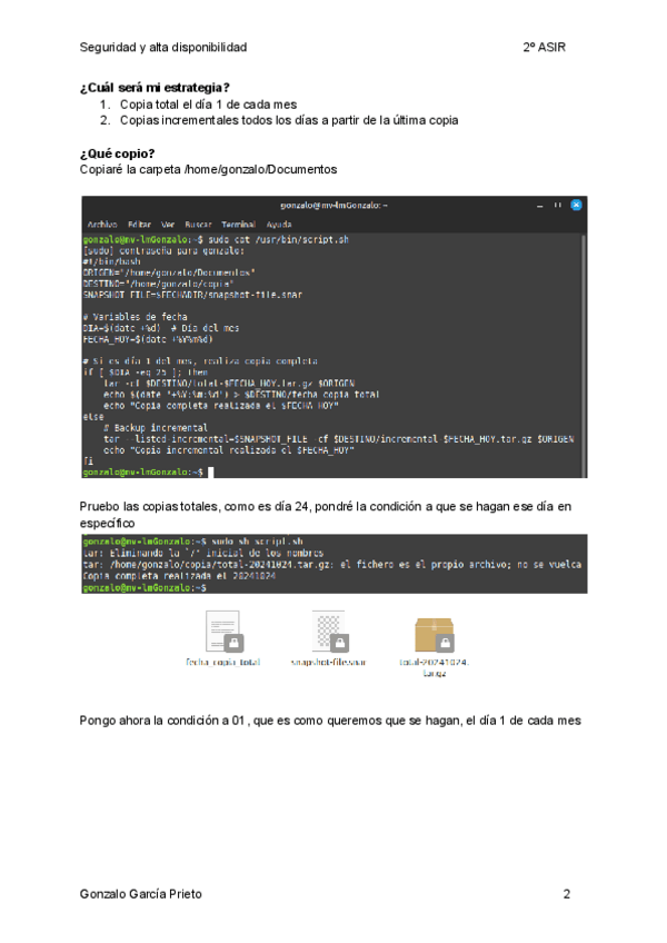 En esta documentación explico como crear un script básico de copia de seguridad en Linux, el cuál está programado para que haga una copia total el día 1 de cada mes y una copia incremental cada día