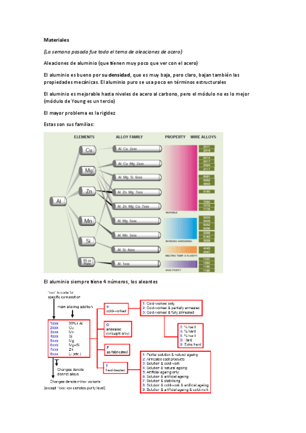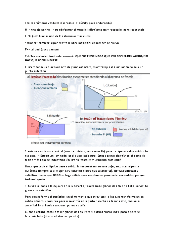 Apuntes de la clase de materiales (Aleaciones de aluminio y cobre) y comentarios sobre las prácticas tanto no puntuables (Matriz) como puntuables (Revestimiento cerámico de horno)