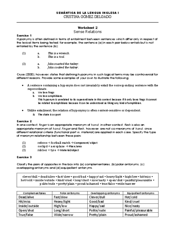 He publicado nuevos ejercicios de 2º Semántica de la lengua inglesa I: Worksheet-1-Semantics-1.pdf