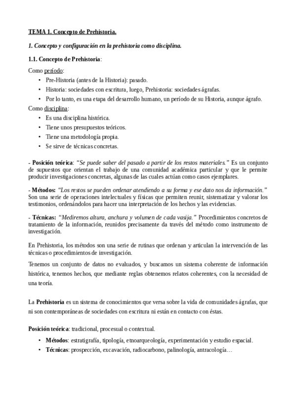 Apuntes Bloque 1: Prehistoria, de la asignatura Seminario de Teoría y Método de la Historia impartida por Ignacio Martín Lerma (curso 2024-2025)