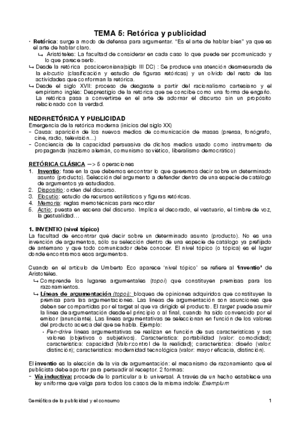 Apuntes Semiótica de la Publicidad y el Consumo Tema 5