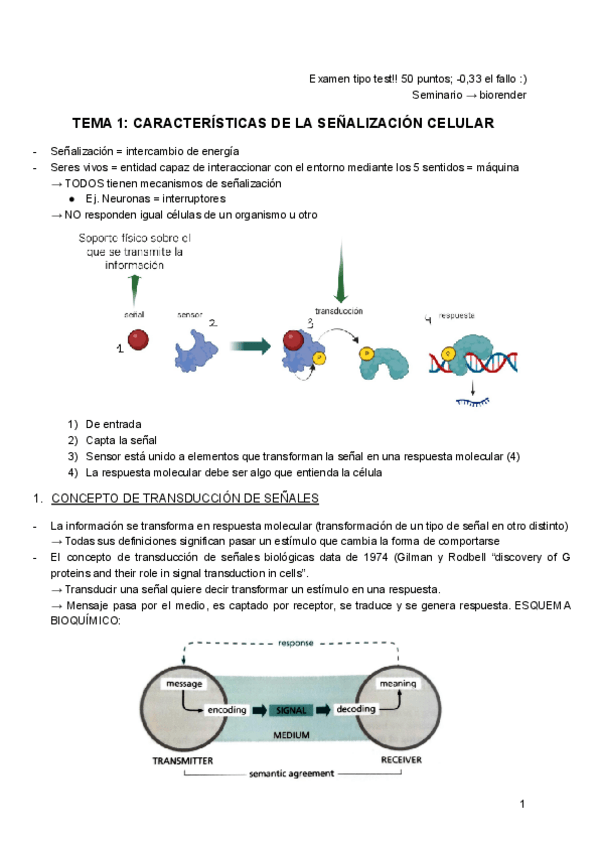 Temario resumido señalización celular