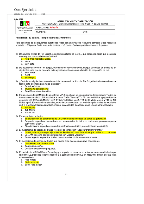 He publicado nuevos ejercicios de 3º Señalización y Conmutación: QoS