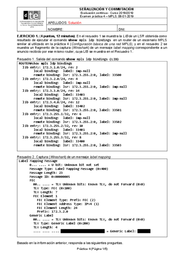 He publicado nuevos ejercicios de 3º Señalización y Conmutación: MPLS