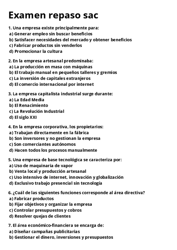 Es un modelo de examen, que hice a modo prueba. En otro documento subo las respuestas! Gracias y suerte!