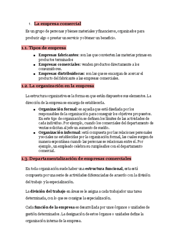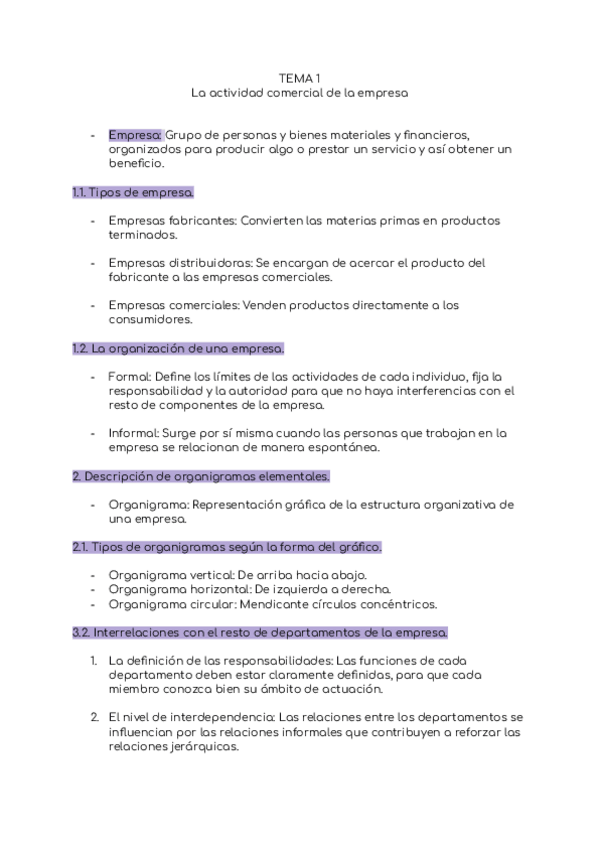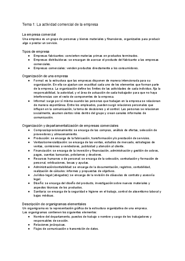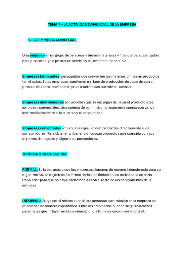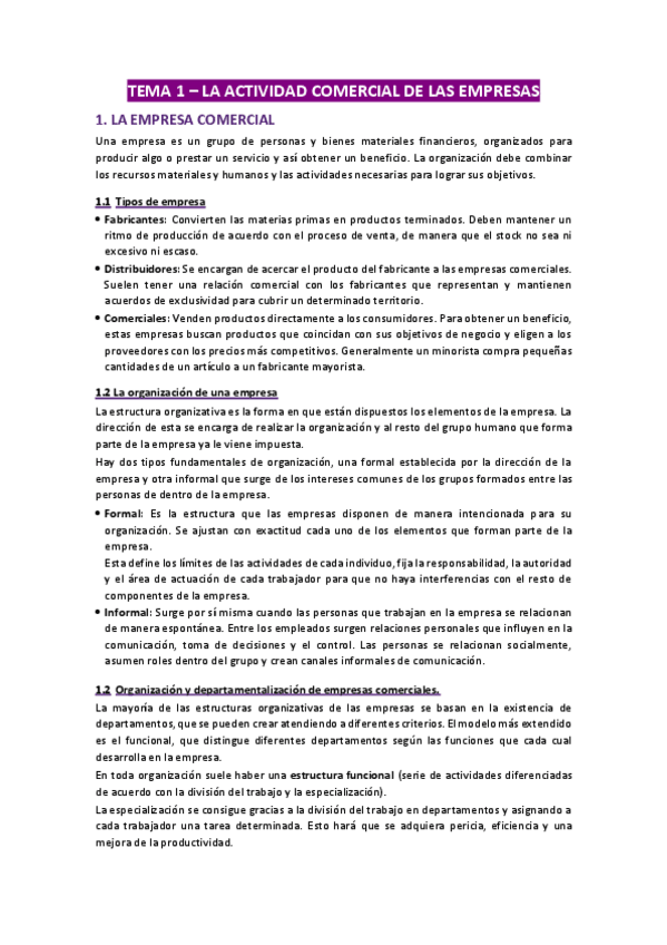 Resumen básico del TEMA 1 SAC – LA ACTIVIDAD COMERCIAL DE LA EMPRESA