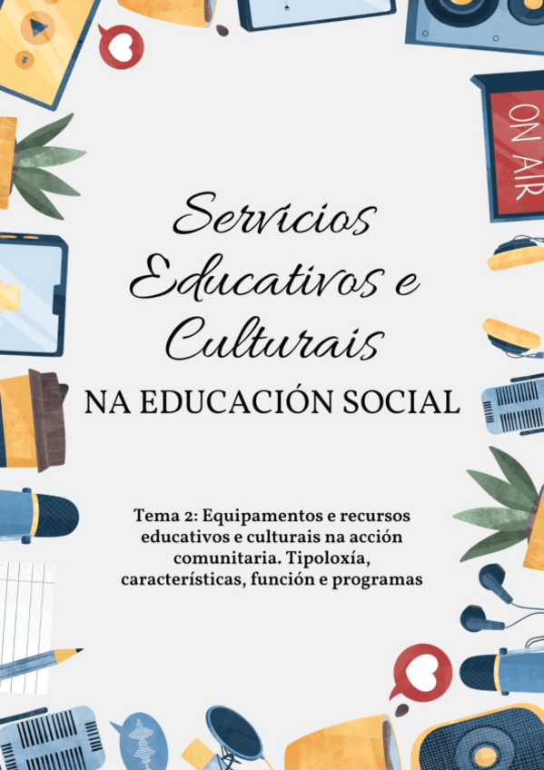 He publicado nuevos apuntes de 2º Servicios Educativos y Culturales en la Educación Social: TEMA-2-Equipamentos-e-recursos-educativos-e-culturais-na-accion-comunitaria.pdf