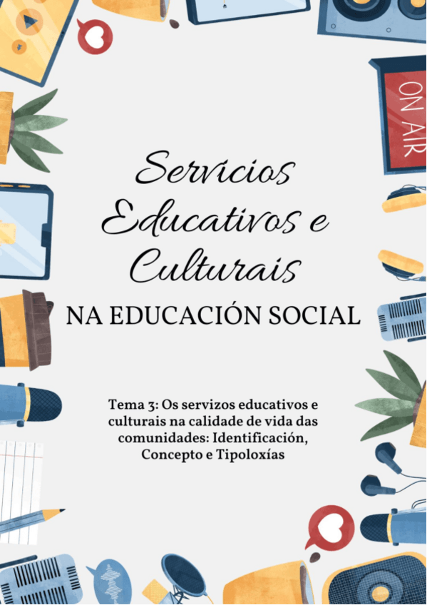 He publicado nuevos apuntes de 2º Servicios Educativos y Culturales en la Educación Social: Tema-3-Os-servizos-educativos-e-culturais-na-caldiade-de-vida-das-comunidades-identificacion-concepto-e-tipoloxias.pdf
