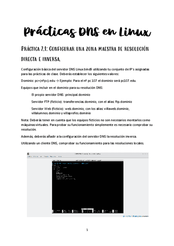He publicado nuevos ejercicios de Servicios en red: Practica36instalacionDNSLinuxRebecayDario.pdf