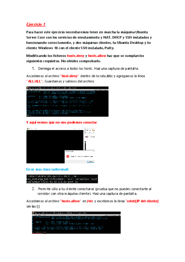 Aquí subo uno de mis ejercicios del servicio SSH en Ubuntu Server y Ubuntu Cliente + Windows Cliente con el programa PuTTY