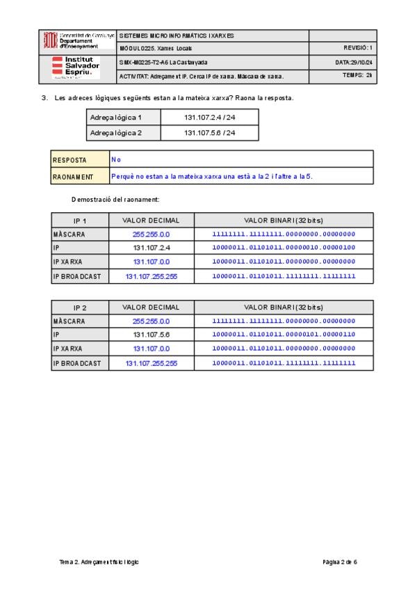 Preguntas cortas resueltas sobre direccionamiento de redes. Incluye: función de la tarjeta de red, diferencias entre dirección física (MAC) y lógica (IP), máscaras de subred, partes de una IPv4, clases de red (A, B, C, D, E), operación AND para calcular r
