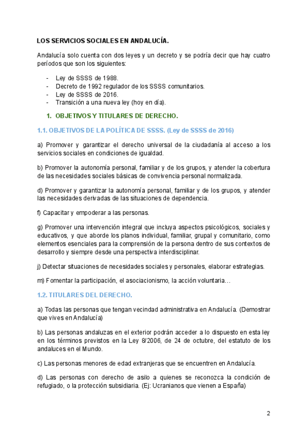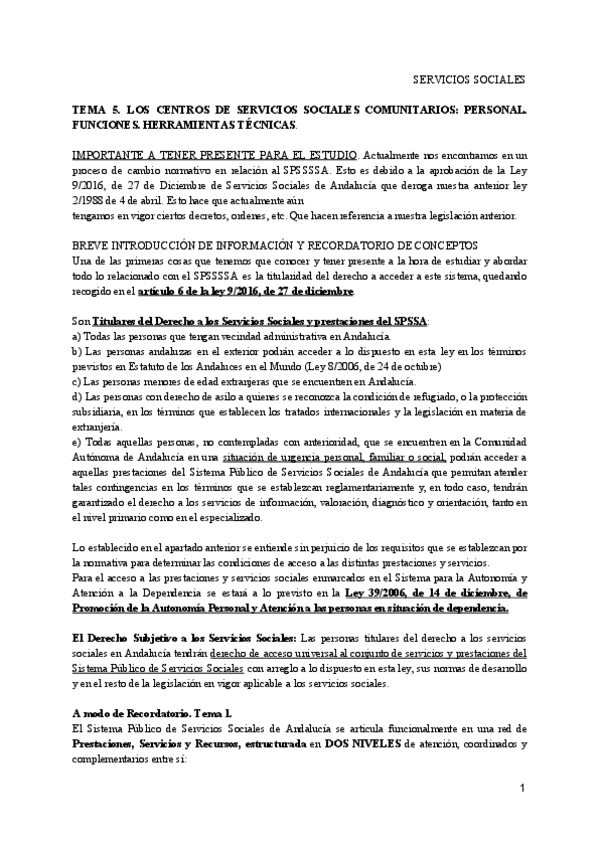 SERVICIOS SOCIALES RESUMEN LEGISLACIÓN