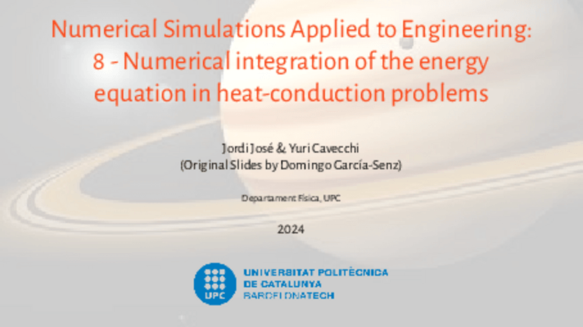 He publicado nuevos apuntes de 4º Simulación Numérica Aplicada a la Ingeniería: 8HeatTrans.pdf