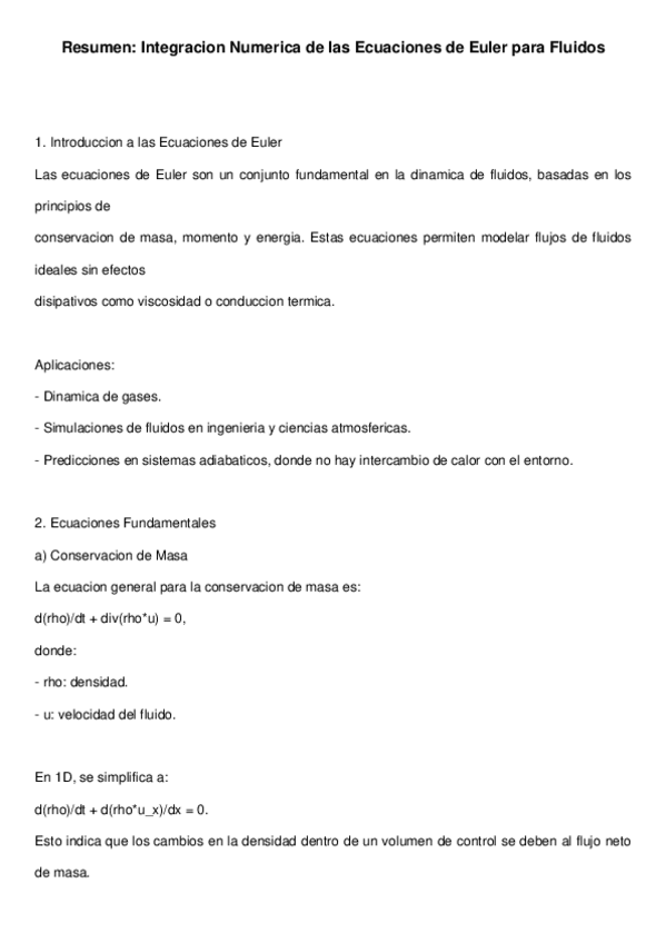 He publicado nuevos apuntes de 4º Simulación Numérica Aplicada a la Ingeniería: EulerFluidSummarySimplified.pdf